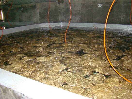 “鲆鰈類全封閉式養殖系統關鍵技術集成與健康養殖”為農業部公益性行業專項 “鲆鰈類全雌苗種大規模培育技術研究”(nyhyzx07-046)的子課題,其主要研究目標是結合鲆鰈類健康養殖技術,組裝配套循環系統,探討全封閉式養殖系統的運行管理模式,以達到節能減排、安全養殖、經濟性和實用性強的目的。項目實施以來,課題組自主研發了微濾機、蛋白質泡沫分離器、高效生物過濾器,組裝配套了海水源熱泵、臭氧發生器、水質(溫度、pH、溶解氧)在線檢測、動力設備故障報警裝置等一系列安全保障和自動控制系統以及相應應用技術。當前試驗的10個水泥養殖池,總容量為100m3,每日添加新水量低于10%,高效生物過濾器體積占養殖總水體的3%。自2007年11月啟動運行至今,整個系統連續運行良好,所養殖大菱鲆苗初始規格為30~50g,養殖7個月,平均體重為428.5g,投放養殖的大菱鲆成活率達99.06%,最終養殖密度達58.7kg/m3,餌料系數為0.79(配合飼料),累計養殖大菱鲆耗水量為0.45m3/Kg。
