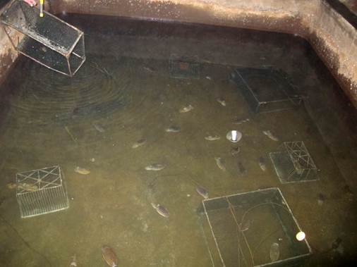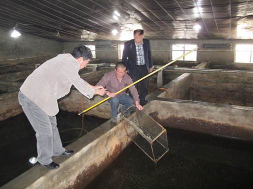 驗收專家組聽取了項目組工作匯報,查閱了相關(guān)資料,并對金烏賊親體和受精卵數(shù)量進(jìn)行現(xiàn)場確認(rèn)。一致認(rèn)為:1. 項目組自2014年7月引進(jìn)了5000只金烏賊苗種開展養(yǎng)殖生產(chǎn),養(yǎng)成至11月底存活4200只,成活率80.4%。2. 對養(yǎng)成的1000只成體進(jìn)行了越冬培育,現(xiàn)場存活850只,越冬成活率達(dá)85%。越冬親體自2015年3月12日開始產(chǎn)卵,產(chǎn)卵期比自然海區(qū)提前60天以上。3. 現(xiàn)場測定金烏賊親體平均胴長16.8cm,平均體重374.6g;處于不同發(fā)育階段的受精卵10000余粒,且金烏賊親體正處于繁殖盛期,將繼續(xù)產(chǎn)卵繁殖,預(yù)計還可生產(chǎn)受精卵20萬粒以上。