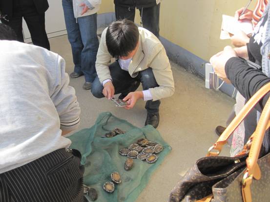 驗收專家組聽取了課題負責人的工作匯報、查閱了有關資料、進行了現場核查和取樣測量,一致確認:2010年在 3040 m2的育苗池中培育出平均殼長2.68cm(最大殼長 3.31cm,最小殼長 2.34cm)的鮑苗1570萬只,平均每平方米產鮑苗5170只;養殖18個月的成鮑平均殼長達到8.53厘米,成活率為93%;鮑苗和成鮑活力強,健康狀況良好。