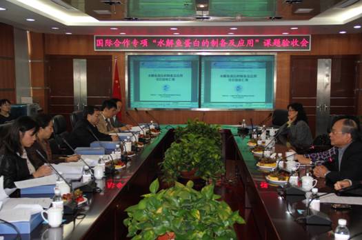10月28日,受科技部國際合作司委托,青島市科技局組織專家對黃海所主持的科技部國際合作專項“水解魚蛋白的制備及應用”項目進行了結題驗收。驗收專家組由中山大學、中科院水生生物研究所、中科院海洋研究所、中國農業大學、中國海洋大學、青島科技大學等單位的七位專家組成。