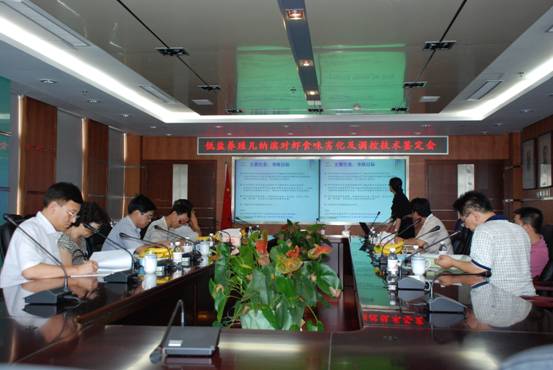 8月11日,山東省科技廳主持并邀請(qǐng)有關(guān)專家家對(duì)黃海所承擔(dān)的國(guó)家自然科學(xué)基金項(xiàng)目“低鹽養(yǎng)殖凡納濱對(duì)蝦食味劣化及調(diào)控技術(shù)”進(jìn)行了鑒定。鑒定委員會(huì)由中國(guó)海洋大學(xué)、中科院海洋所、國(guó)家海洋局一所、山東省海水養(yǎng)殖研究所、青島農(nóng)業(yè)大學(xué)、青島市水產(chǎn)技術(shù)推廣站等單位的專家組成。