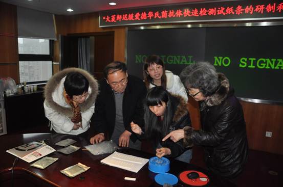 與會專家聽取了項目組的工作報告、技術研究報告,并現場驗證試紙條的檢測效果。經質詢、答疑、討論,認為項目在國內首次研制出用于水產養殖領域的大菱鲆遲緩愛德華氏菌抗體快速檢測試紙條,該試紙條的檢測特異性與敏感性高,與酶聯免疫吸附法(ELISA)水平相當;大菱鲆遲緩愛德華氏菌抗體快速檢測試紙條使用方便,不需專業技能和額外的儀器或試劑,適宜操作人群廣,5分鐘內可裸眼觀察并獲得結果,適合在生產現場使用。