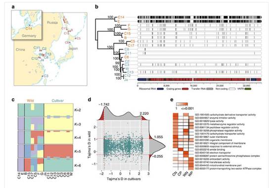 中國(guó)的海帶栽培面積和產(chǎn)量占世界總量的90%以上,直接和間接產(chǎn)值超過百億元。然而,近年來我國(guó)乃至世界海帶育種難以取得突破性的進(jìn)展、單產(chǎn)很難大幅提升,主要原因是目前海帶品種的生物多樣性水平低,遺傳基礎(chǔ)狹窄,匱乏的種質(zhì)和基因資源成為制約海帶育種研究的關(guān)鍵。研究人員獲得了有代表性的7份養(yǎng)殖海帶和9份野生海帶的高覆蓋度基因組草圖,通過比較分析,在全基因組水平上全面解析了栽培和野生海帶種間遺傳變異,從養(yǎng)殖群體中平均識(shí)別了約0.94M SNVs和96K的小INDELs,從野生群體中平均識(shí)別了約2.27M SNVs和274K的小INDELs。這些遺傳變異位點(diǎn)為后續(xù)的馴化基因選擇及優(yōu)質(zhì)品種選育提供了重要的數(shù)據(jù)基礎(chǔ)。盡管養(yǎng)殖海帶和野生海帶存在不同程度的基因交流,但中國(guó)養(yǎng)殖海帶主要來源于日本的同一個(gè)地理群體,養(yǎng)殖品系由于頻繁自交已經(jīng)呈現(xiàn)明顯的退化狀態(tài)。