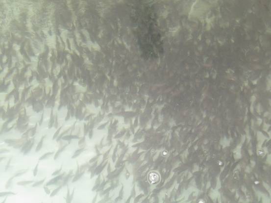 驗收專家組認真聽取了課題組的工作匯報,考察了萊州明波水產有限公司的生產現場,查閱了相關生產及實驗記錄,現場取樣計數了七帶石斑、云紋石斑親魚及苗種數量,測定了苗種全長。確認:項目實施期間,課題組培育七帶石斑魚種魚369尾;云紋石斑魚種魚386尾;成功采用激素誘導獲得兩種石斑魚功能性雄魚轉化率分別為80%和95%。培育出七帶石斑魚苗10.7萬尾(6.9cm-11.7cm),云紋石斑魚苗51.5萬尾(4.2-8.9cm),云紋石斑魚(♀)×七帶石斑魚(♂)雜交魚苗1萬尾(3.4-5.0cm)。