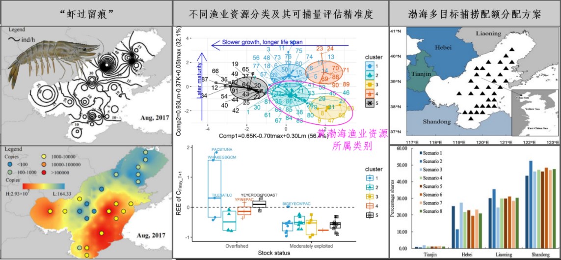針對現行漁業資源評估與管理存在的問題,黃渤海漁業資源與生態創新團隊構建了漁業資源適應性評價技術體系,建立了中國對蝦eDNA生物量評估技術,eDNA檢測敏感度可以達到自然水體10拷貝/微升檢出率,實現了“蝦過留痕”,成功應用于渤海魚類生物多樣性解析,該技術可能為傳統漁業資源拖網調查帶來變革;提出了基于多目標的緩解渤海漁業沖突的捕撈配額分配策略,創新了多種類漁業資源時空動態的同步優化評估技術,構建了基于非連續漁業資源調查和漁業生產數據的評估模型,實現了對漁業產量數據和間斷性調查數據的充分利用,提升了漁業資源評估精度,有效支撐了國家和區域漁業資源科學養護與管理,也為解決國際漁業爭端提供了新視角。