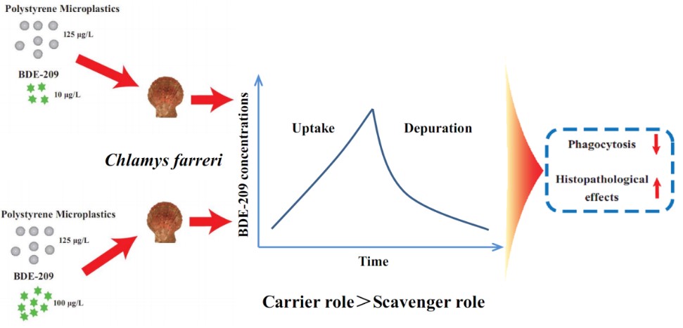 海洋微塑料污染已成為全球性重大環境問題。解析典型海洋漁業水域微塑料污染特征,破解微塑料的載體效應已成為海洋環境治理過程中的重要科學問題。黃渤海漁業生態環境評價與生物修復創新團隊通過解析桑溝灣水域微塑料的污染特征,估算出桑溝灣海域微塑料的現存量,以養殖區典型微塑料類型為研究對象,研究了聚苯乙烯微塑料與十溴聯苯醚對櫛孔扇貝的聯合毒性效應,發現微塑料對十溴聯苯醚的載體作用超過清除作用,從而增強了扇貝對十溴聯苯醚的生物富集;通過自主研發的微塑料原位研究裝置,研究了漁業水域微塑料表面生物膜的形成過程,發現夏季微塑料表面附著大量潛在致病性弧菌,初步探明了微塑料表面弧菌的富集機制。研究成果對于闡明微塑料的漁業環境效應具有重要意義。相關成果發表在Environmental Pollution、Science of the Total Environment和Marine Pollution Bulletin等國際權威期刊。