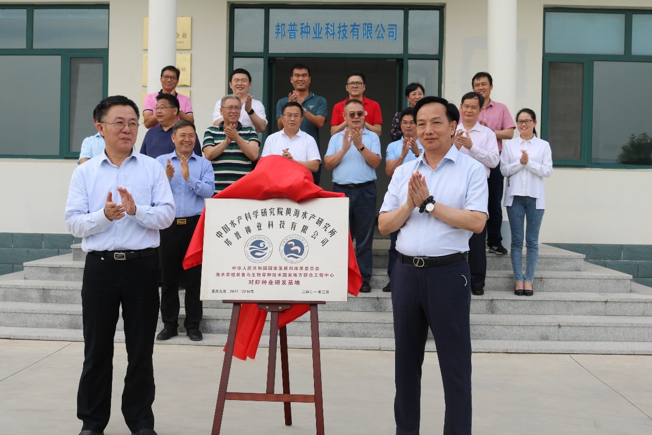 6月7日,中國水產(chǎn)科學(xué)研究院黃海水產(chǎn)研究所與邦普種業(yè)科技有限公司合作共建的“對(duì)蝦種業(yè)研發(fā)基地”“對(duì)蝦育種聯(lián)合實(shí)驗(yàn)室”揭牌儀式在濰坊昌邑市下營鎮(zhèn)舉行。昌邑市政府黨組副書記、昌邑經(jīng)濟(jì)開發(fā)區(qū)黨工委書記、管委會(huì)主任李明杰,昌邑市海洋事業(yè)發(fā)展中心主任馬玉濤,恒興集團(tuán)、恒興股份、邦普種業(yè)科技有限公司董事長陳丹,恒興股份執(zhí)行副總裁王建紅,恒興股份副總裁歐陽艷、李色東等公司高管,黃海水產(chǎn)研究所所長金顯仕、副所長孔杰,所長助理、辦公室主任榮小軍以及所內(nèi)相關(guān)部門負(fù)責(zé)人和專家團(tuán)隊(duì)等50余人參加了揭牌儀式,儀式由成果轉(zhuǎn)化處處長王印庚主持。