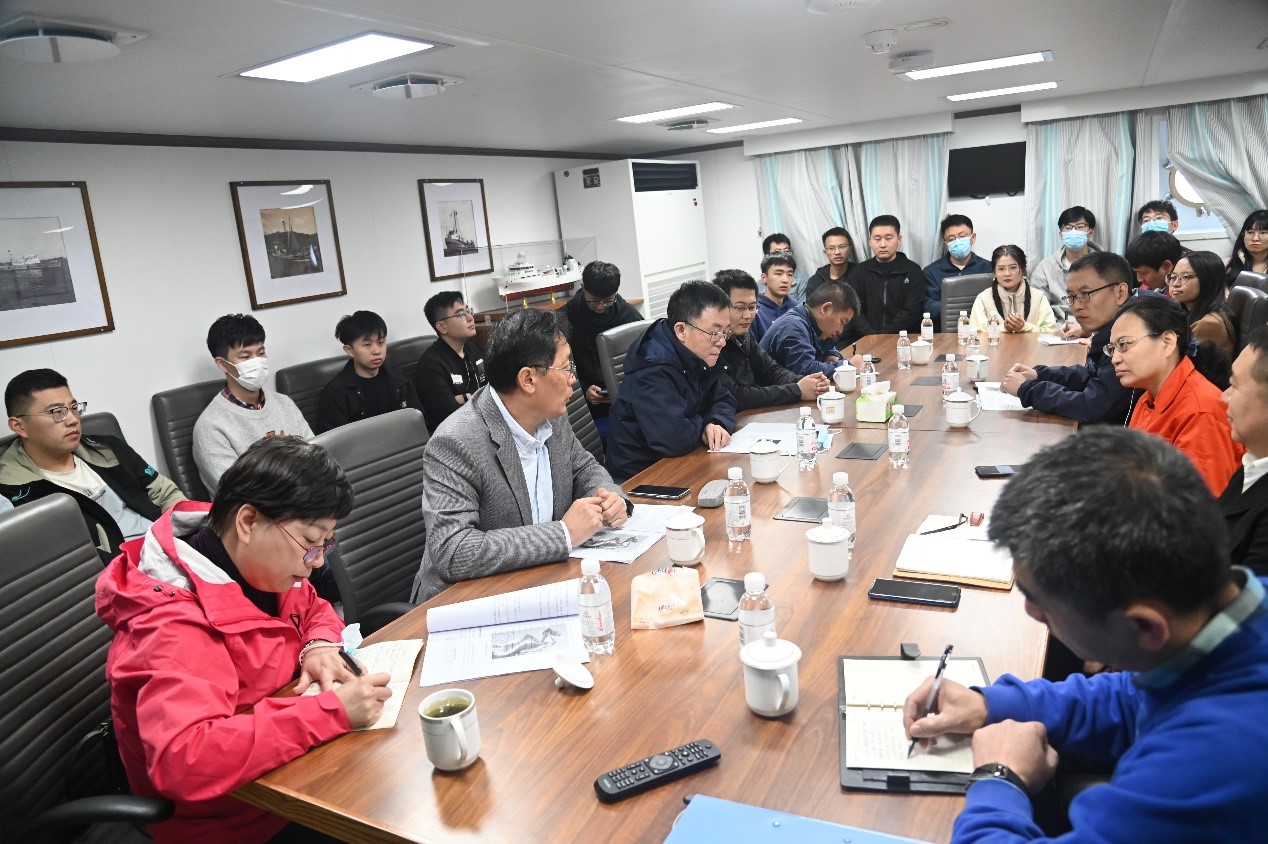 金顯仕所長在聽取各方匯報后,重點提出三點要求:一是要珍惜海上調查機會,保證人身安全、數據安全、設備安全;二是要充分利用海上調查之余共同研討,促進學科交叉和科學問題凝練;三是要繼承發揚“團隊協作、勇于擔當、嚴謹求實、拼搏奉獻”的精神,互相支持,相互配合,全體船員要協助科研人員保質保量獲取科研數據,圓滿完成航次調查任務。
