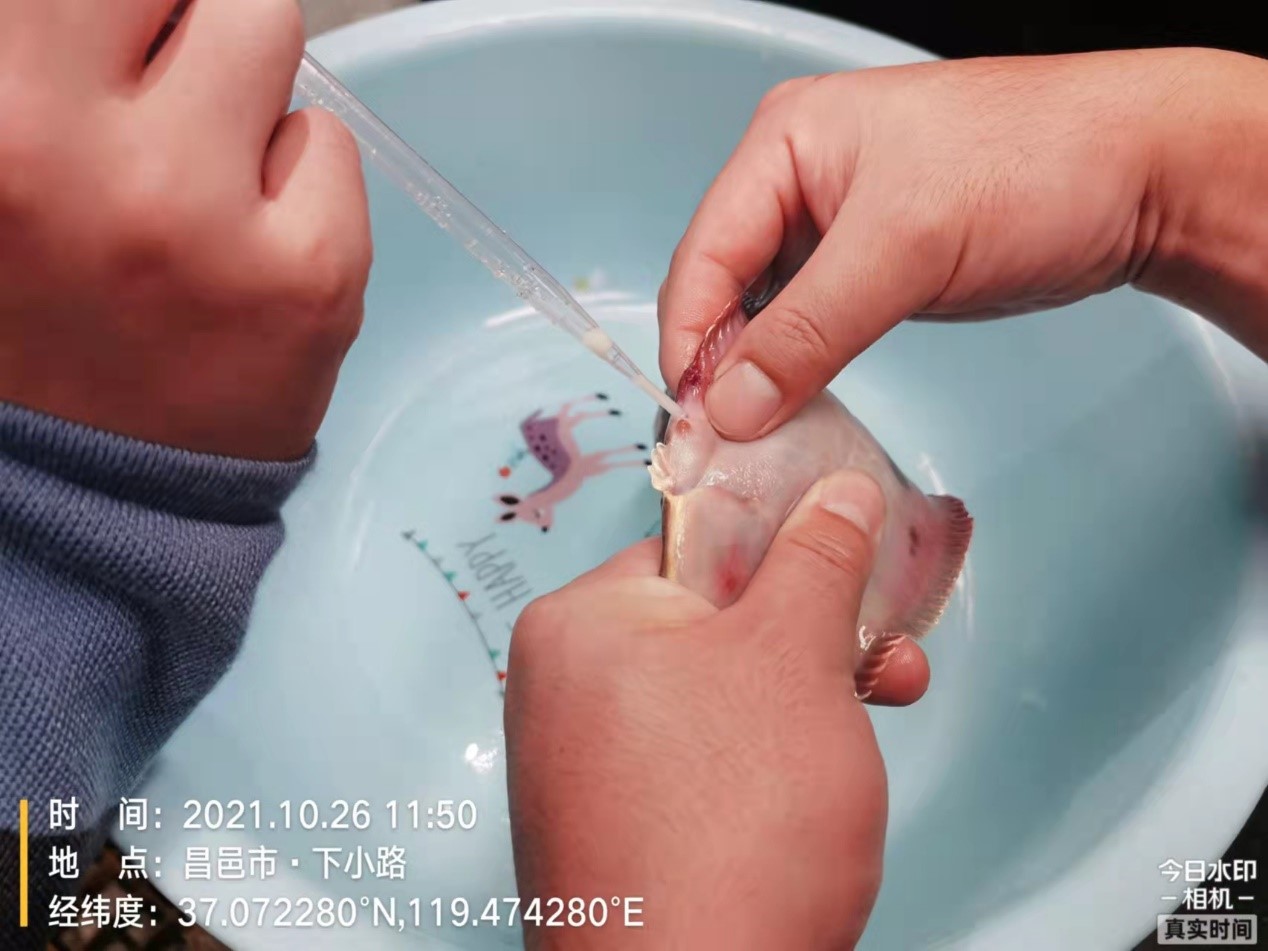 9月底至10月底,調查組奔赴6個調查單位開展半滑舌鰨種質資源調查工作。期間,按照《水產養(yǎng)殖種質資源基礎信息表》要求,詳細記錄各調查單位養(yǎng)殖、育種和保種情況以及生產情況;按照《魚類樣品采集技術規(guī)范》要求,對半滑舌鰨進行生物學特性測量,完成用于進行品質、遺傳多樣性指標、生理生化指標檢測樣本的收集工作;按照《魚類種質資源遺傳材料制作規(guī)范》要求,完成各個調查點標本、基因、細胞種質資源的采集和制作。調查組結合半滑舌鰨育種和養(yǎng)殖情況,選擇位于海陽市黃海水產有限公司的鲆鰈魚類遺傳育種中心和掛靠在唐山市維卓水產養(yǎng)殖有限公司的河北省半滑舌鰨良種場進行活體保存,活體后備親本規(guī)模累計達到1.5萬尾以上。