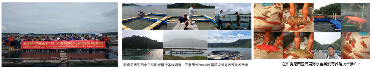 黃海水產(chǎn)研究所2014年起參與了科技部“中國東盟海上合作基金項目-海水養(yǎng)殖技術(shù)聯(lián)合研究與推廣中心”建設(shè),該項目是第一批落實17個“中國-東盟海上聯(lián)合基金”項目之一。項目組以“互利共贏”為宗旨,與泰國、印度尼西亞、馬來西亞、菲律賓、越南等東盟國家開展海水養(yǎng)殖國際合作,共同建設(shè)“中國-東盟海水養(yǎng)殖技術(shù)聯(lián)合研究與推廣中心”,合作開展海水魚類等繁育養(yǎng)殖遺傳育種技術(shù)、大型海上網(wǎng)箱養(yǎng)殖技術(shù)、水產(chǎn)動物疾病防控、健康養(yǎng)殖等聯(lián)合研究和技術(shù)推廣,與東盟相關(guān)國家簽訂涉漁技術(shù)合作協(xié)議8份,組織實施交流培訓(xùn)12批次。與泰國農(nóng)業(yè)大學(xué)、亞洲理工學(xué)院、瑪希隆大學(xué)、布拉帕大學(xué)、印度尼西亞巴淡海洋研究所、三林萬業(yè)企業(yè)集團、哈利姆公司、菲律賓Red-Seidon水產(chǎn)養(yǎng)殖公司、馬來西亞GST海產(chǎn)集團、越南昇龍生物科技有限公司等開展了聯(lián)合研究和水產(chǎn)養(yǎng)殖技術(shù)推廣培訓(xùn),建立養(yǎng)殖示范基地。如,在印度尼西亞和菲律賓開展豹紋鰓棘鱸、虎龍石斑魚等繁育與網(wǎng)箱養(yǎng)殖技術(shù)示范推廣和波紋唇魚繁育保護工作;在馬來西亞開展以紅鰭笛鯛和金目鱸等繁育選育與健康養(yǎng)殖技術(shù)示范與推廣;針對泰國、柬埔寨、越南和菲律賓等舉辦了多次水產(chǎn)疫病診斷技術(shù)培訓(xùn),提供對蝦及魚類病原快速檢測試劑盒;與泰國布拉帕大學(xué)在海水珊瑚礁魚類等種質(zhì)保存、繁育制種及品質(zhì)改良等研究領(lǐng)域開展聯(lián)合研究等。