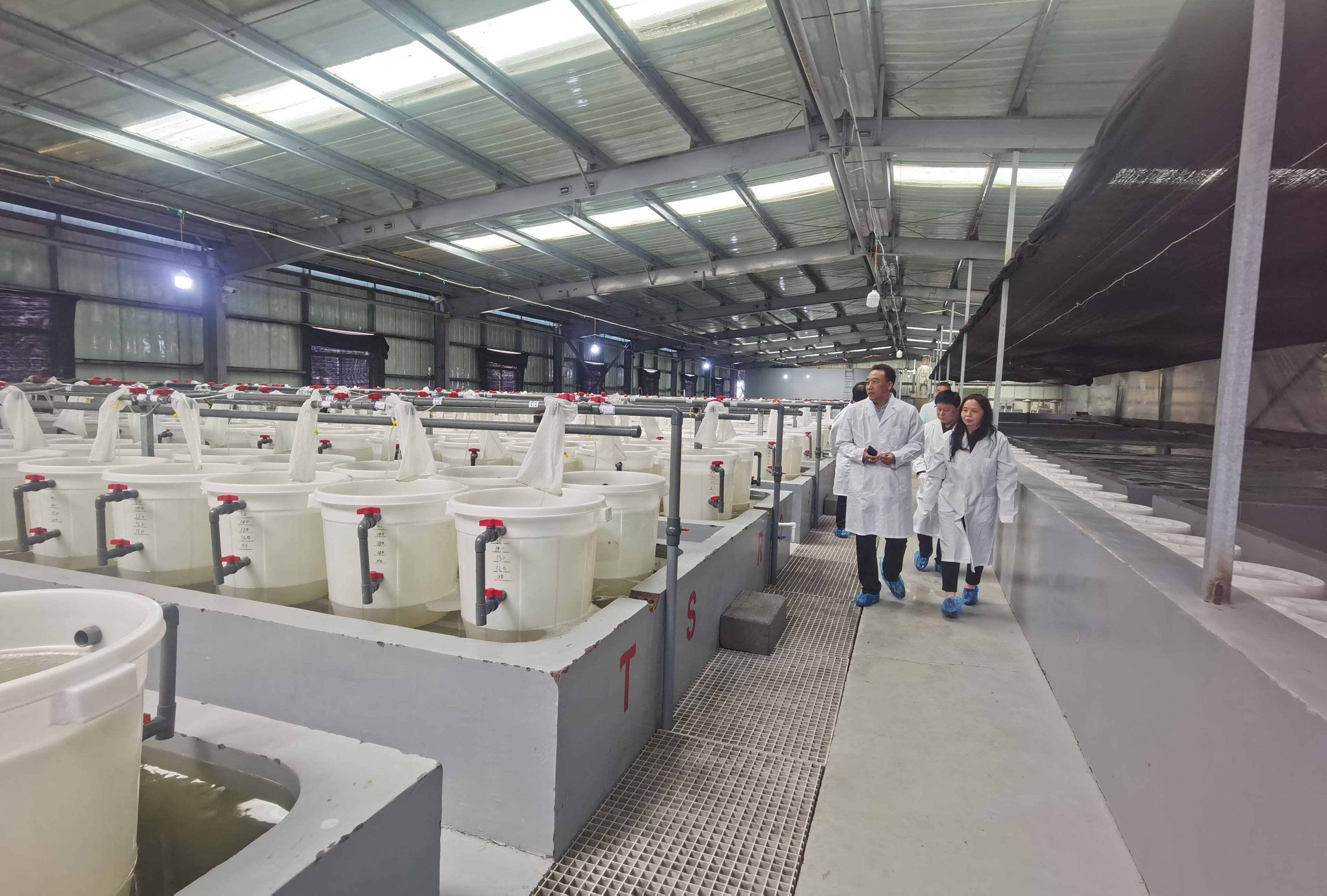 專家現(xiàn)場查看中國對蝦耐低溫擴(kuò)繁苗種情況