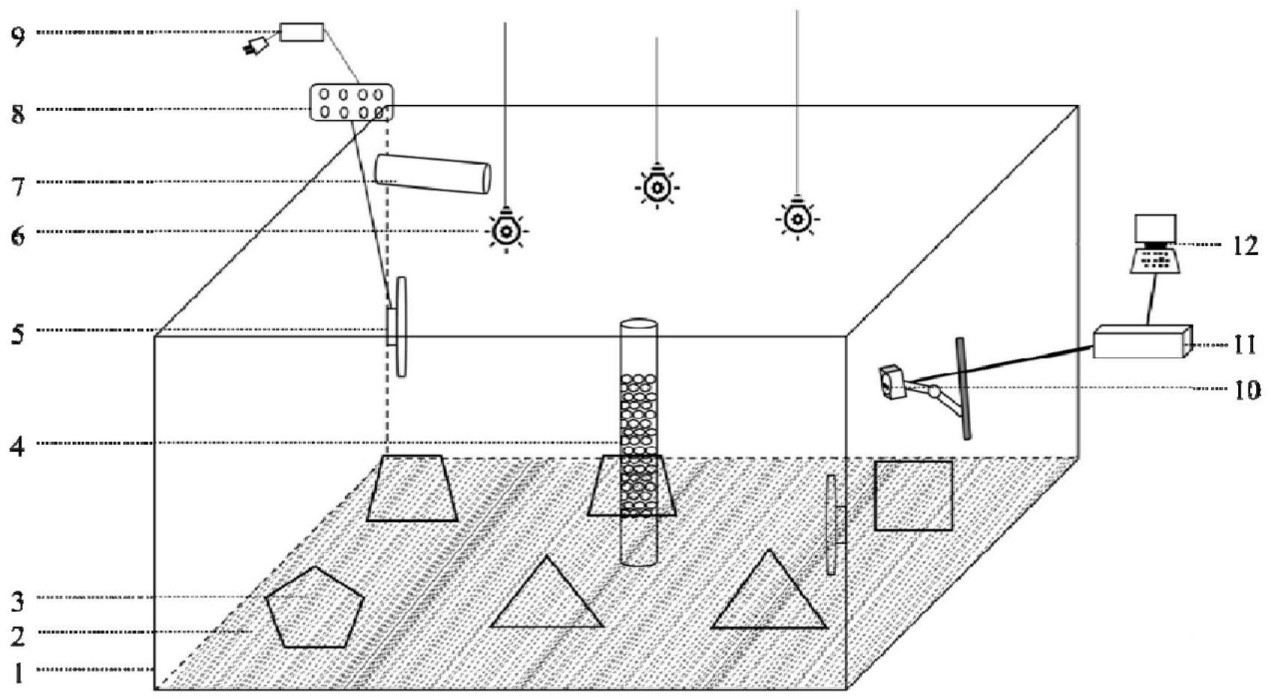 本發(fā)明提供了一種海水魚類增殖放流苗種野性馴化系統(tǒng)及馴化方法,屬于海洋生物資源養(yǎng)護技術(shù)領(lǐng)域,所述馴化系統(tǒng)包括馴化場、光源、造流泵、人工魚礁和攝像系統(tǒng)。使用本發(fā)明系統(tǒng)用于馴化放流苗種的攝食和逃避捕食的能力,增強人工繁殖的增殖放流苗種適應(yīng)海洋自然環(huán)境的能力,提高放流苗種的存活率,進而提升海水魚類放流的增殖效果。