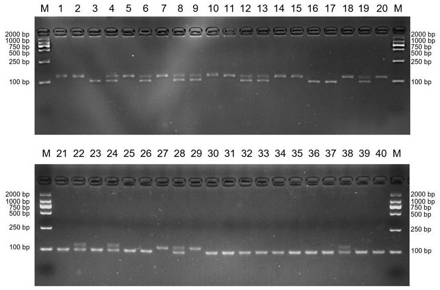 本發明涉及鑒定三疣梭子蟹氨氮耐受性狀的InDel標記C3082、引物及其應用,屬于DNA分子標記技術領域。所述分子標記C3082是一種InDel標記,缺失純合為氨氮耐受基因型。本發明還利用所述分子標記C3082設計得到了一對有效的核苷酸序列的擴增引物。所述分子標記C3082和其擴增引物能夠從分子水平對耐氨氮的三疣梭子蟹個體進行鑒定和篩選,方法簡單,準確可靠,有效加快耐氨氮三疣梭子蟹新品種的選育進程。