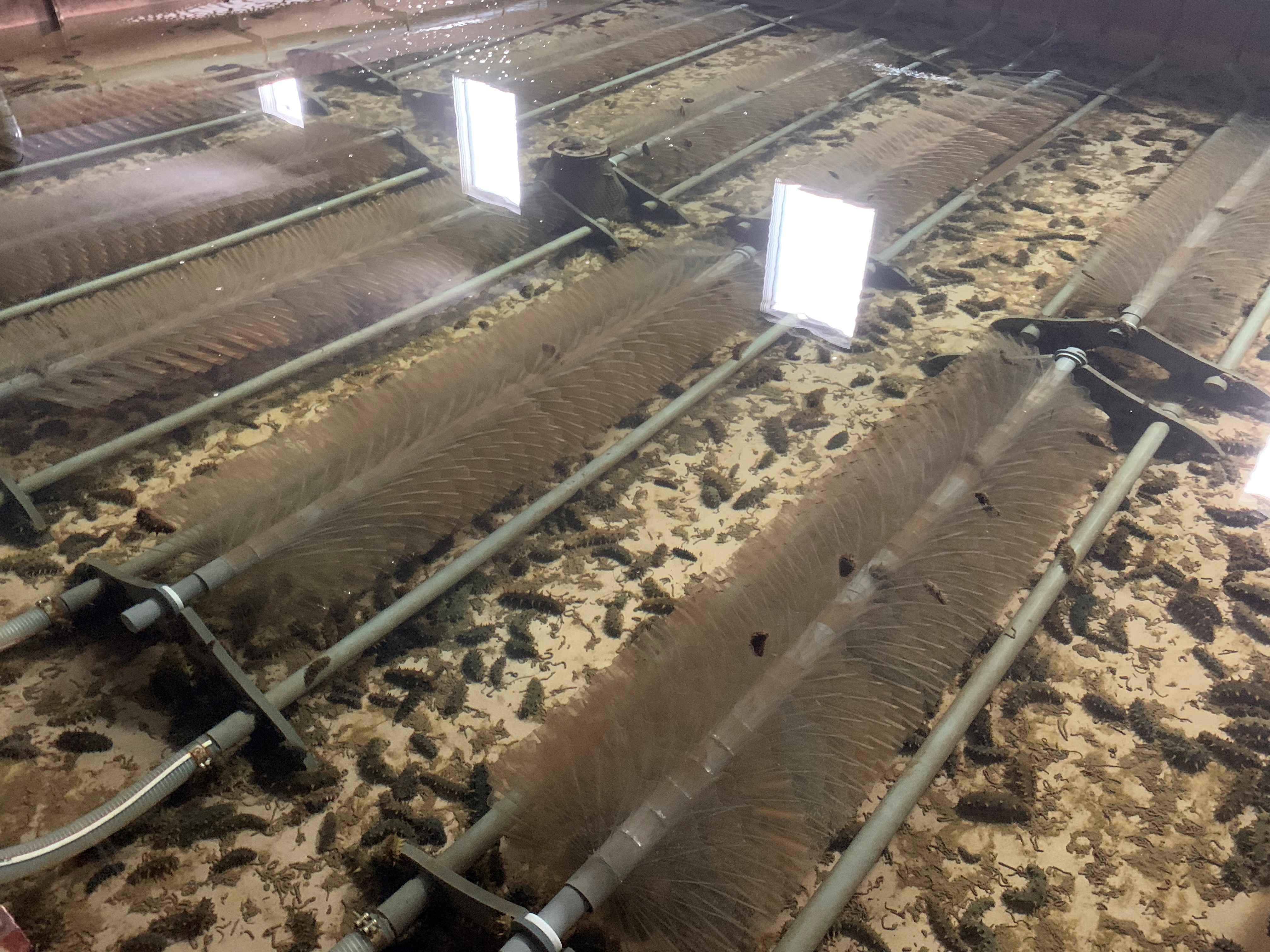 本發(fā)明解決了海參工廠化養(yǎng)殖附著基需要定期人工清洗的難題,保證了海參工廠化循環(huán)水養(yǎng)殖系統(tǒng)的不間斷運(yùn)行。本發(fā)明已在國家“十三五”藍(lán)色糧倉重點研發(fā)計劃項目“工廠化養(yǎng)殖水質(zhì)智能調(diào)控技術(shù)與裝備研發(fā)”(2019YFD0900500)進(jìn)行了推廣應(yīng)用,效果良好。