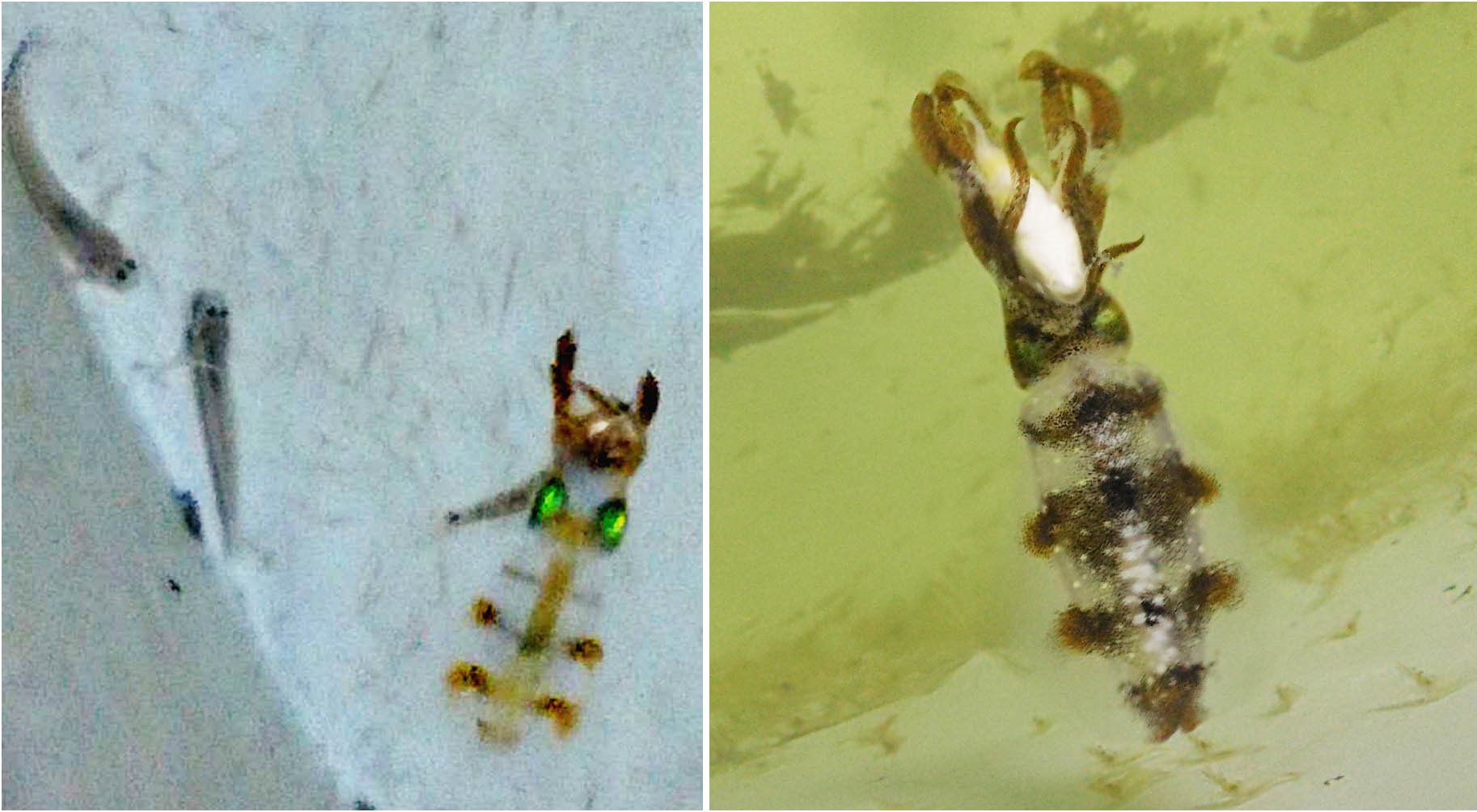 本發明針對萊氏擬烏賊不攝食底部餌料的特性,在苗種培育前期,通過降低水位,縮小烏賊和池底的距離,以及投喂配合飼料增加糠蝦和魚苗攝食餌料時的活動頻率,成功馴化烏賊攝食底部活餌;針對萊氏擬烏賊攝食冰鮮餌料后隨即吐出的特性,本發明采用冷麻醉的方法將活餌麻醉,烏賊攝食后,餌料在口中掙扎,讓烏賊感受到攝食的是活餌而不吐出,同時麻醉復蘇后的活餌還可在池底存活,然后被烏賊攝食,進而馴化解決了烏賊不攝食冰鮮餌料的難題;同時在投喂餌料時,萊氏擬烏賊積極爭搶下沉階段的餌料,針對這一特性,本發明通過升高水位的方式,增大餌料下沉距離,延長餌料下沉時間,顯著增加了烏賊的攝食頻率,從而解決了萊氏擬烏賊餌料馴化投喂難題。