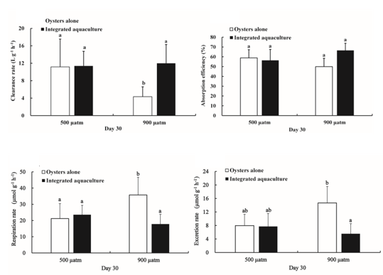 隨后,該研究團(tuán)隊(duì)利用一套自主研發(fā)的自動控制pH的野外圍隔實(shí)驗(yàn)系統(tǒng),探討了貝藻綜合養(yǎng)殖在緩解海洋酸化脅迫中的積極作用。結(jié)果發(fā)現(xiàn),海帶的存在能夠顯著提升長牡蠣的濾水率和生長余力,合理的貝藻配比(長牡蠣:海帶濕重比約1:1.6)可有效緩解海洋酸化脅迫對長牡蠣生理活動的負(fù)面影響,證實(shí)了貝藻綜合養(yǎng)殖模式是積極應(yīng)對海洋酸化負(fù)面效應(yīng)的有效途徑。相關(guān)研究為深入認(rèn)識海洋酸化的生物學(xué)效應(yīng),探索綠色、高效的海洋酸化緩解途徑提供了重要的理論依據(jù)和實(shí)踐參考。