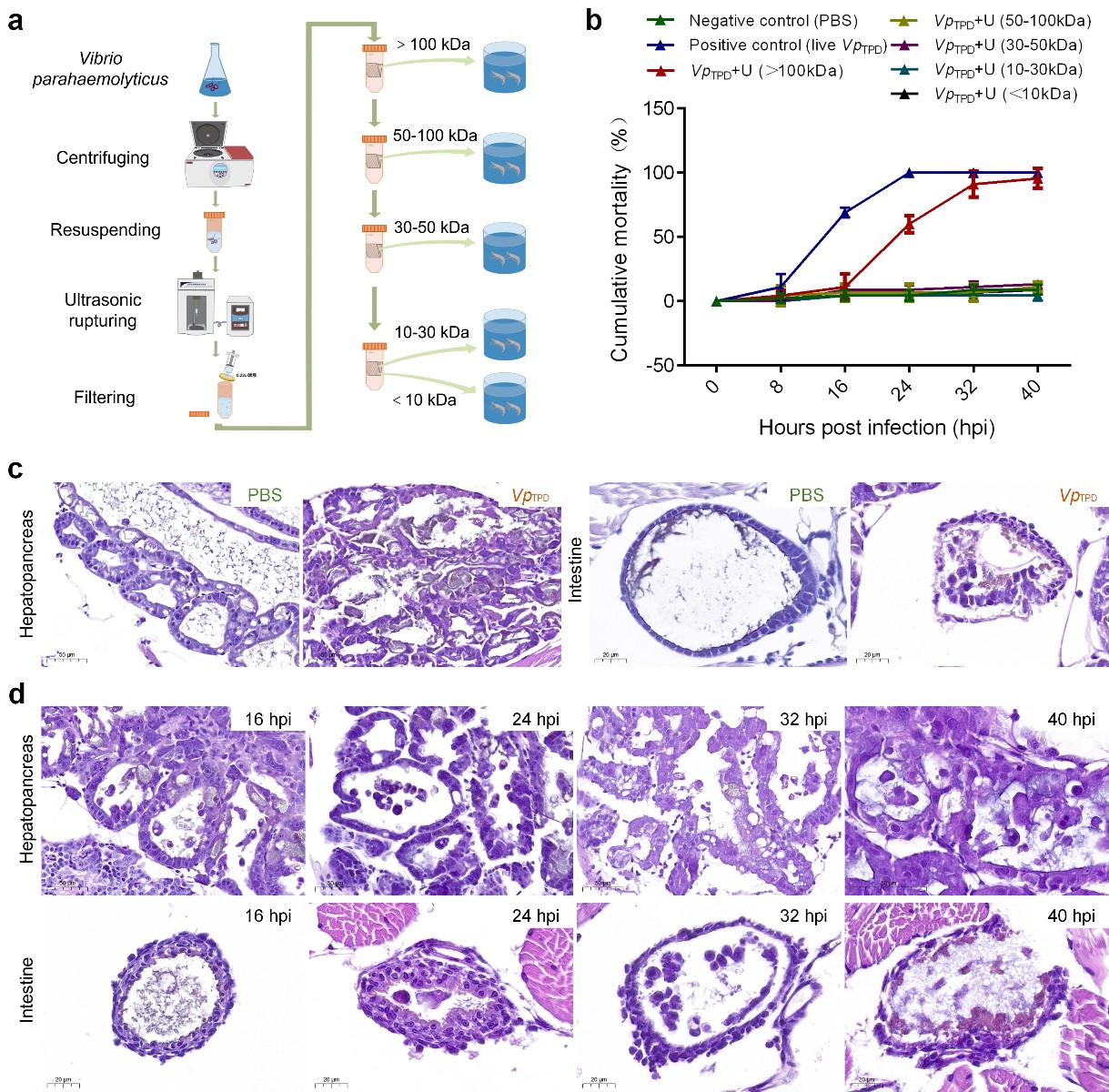 養殖對蝦新發病不斷出現,如玻璃苗弧菌?。╰ranslucent post-larva vibriosis,TPV)導致全國80%對蝦育苗場關閉,嚴重威脅我國對蝦種業安全和養殖業綠色發展。近日,中國水產科學研究院黃海水產研究所蝦貝類流行病與防控團隊通過質譜與比較基因組分析、毒力基因敲除與回補分析等系統研究,率先明確了致玻璃苗弧菌(VTPV)的關鍵毒力因子及其致病機制。研究成果發表于JCR一區、微生物學領域國際著名期刊Microbiology Spectrum上。
