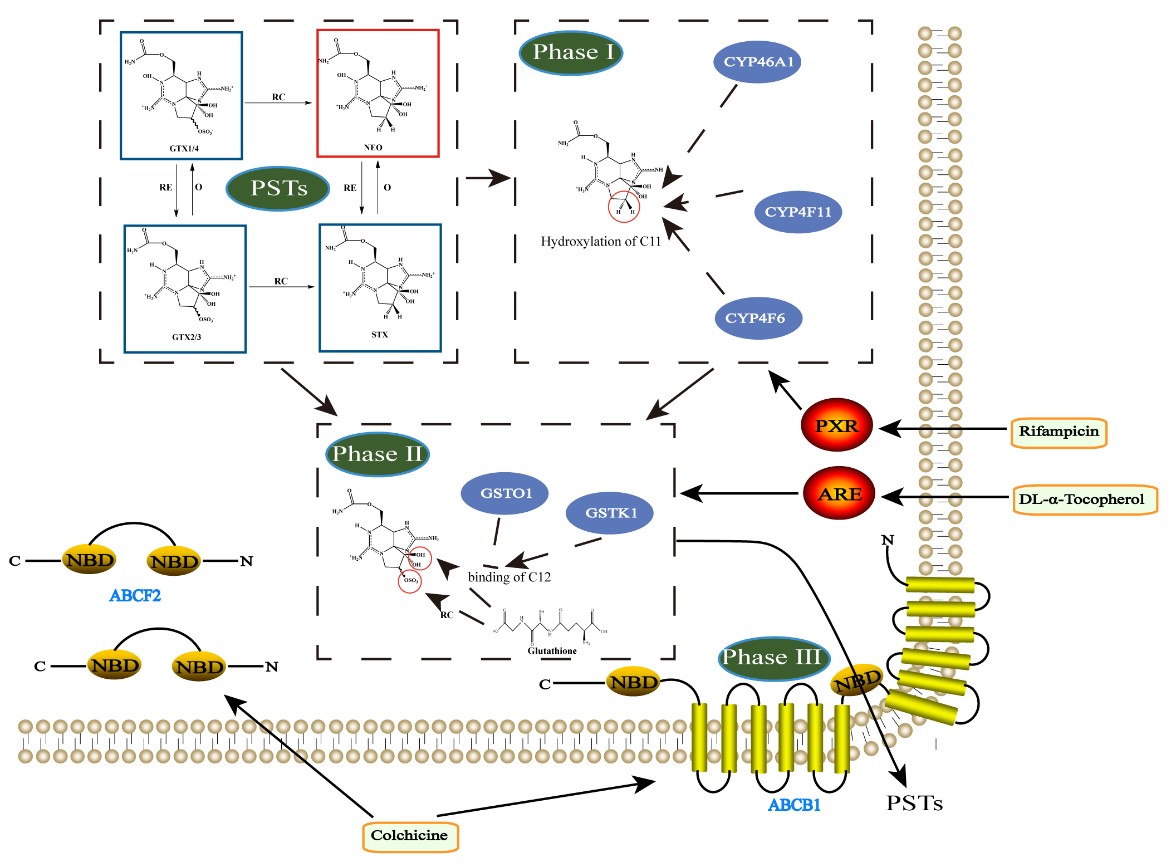麻痹性貝類毒素是現有8大類貝類毒素中風險最大、危害最嚴重的種類,為全球關注熱點和管控重點。本研究剖析了麻痹性貝類毒素在櫛孔扇貝中的代謝解毒機制,創新開發了誘導劑干預技術對機制因子的針對性驗證方法,發現以利福平對CYP450通路基因干預可顯著降低櫛孔扇貝內臟團中的PSTs蓄積,降低率高達55.3%。聯合轉錄組學分析差異基因與麻痹性貝類毒素代謝相關性,篩選出4個強相關基因(CYP46A1、CYP4F6、GSTM1和ABCF2)。本研究為后續側重開展天然誘導劑的研究提供了新的方向。