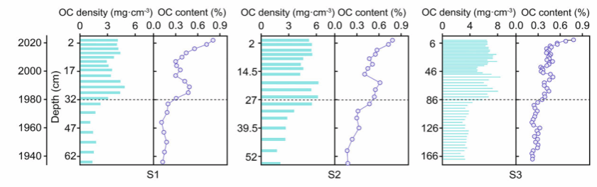 基于210Pb定年的沉積物有機碳垂向變化