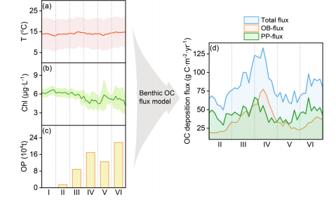 研究團隊聚焦北方規模化養殖海灣-桑溝灣,通過分析近百年沉積巖芯,發現集約化牡蠣養殖使沉積物有機碳埋藏通量提升2.6倍,達91.6–106g C·m-2·yr-1,這一效率可以比擬紅樹林、海草床等典型藍碳生態系統。其中,微生物殘體是沉積有機碳的關鍵組成部分,貢獻率在30–42%,遠高于非養殖區7–22%。而借由微生物殘體形成難降解有機碳占比從養殖前的42.5%升至60.2%,從而增強了沉積碳的穩定性。以此推算,全球牡蠣養殖每年可促成約47萬噸碳沉積,其中28萬噸以難降解形式長期封存。廣義線性混合模型(GLMM)分析顯示,牡蠣產量、生物沉積通量與溫度是埋藏效率的顯著負驅動因子。