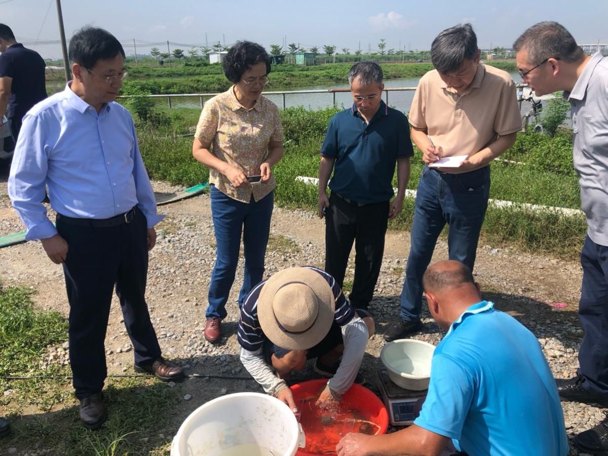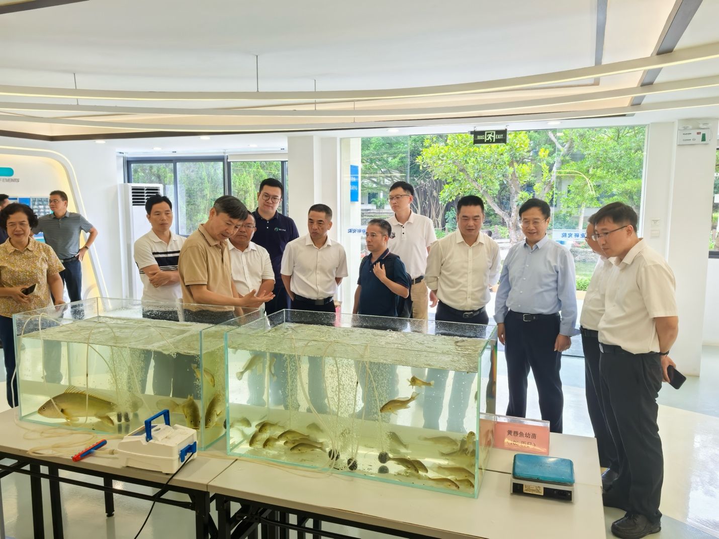 廣州市農業農村局漁業處處長陳波、廣州市南沙區人民政府市管一級調研員蔣志剛、南沙區農業農村局總畜牧獸醫師粱云塵、廣州市農業農村科學院黨委書記及院長詹建坡等共同見證了廣州黃唇魚取得首次育苗成功的重要時刻。