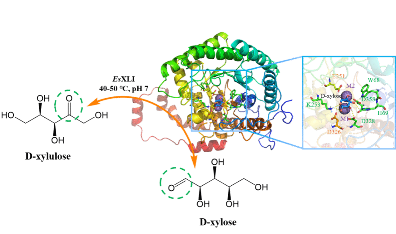 木糖異構酶(Xylose isomerase)是生物質轉化、稀有糖合成及高果糖漿生產中的關鍵酶,在食品、醫藥和生物能源等領域具有廣泛應用。然而,目前大多數商業化木糖異構酶來源于嗜熱微生物,其催化反應通常需在70–95 ℃條件下進行,不僅能耗高,還易產生美拉德反應副產物,影響產品色澤與風味。因此,開發兼具高催化性能與低溫適應性的木糖異構酶具有重要意義。