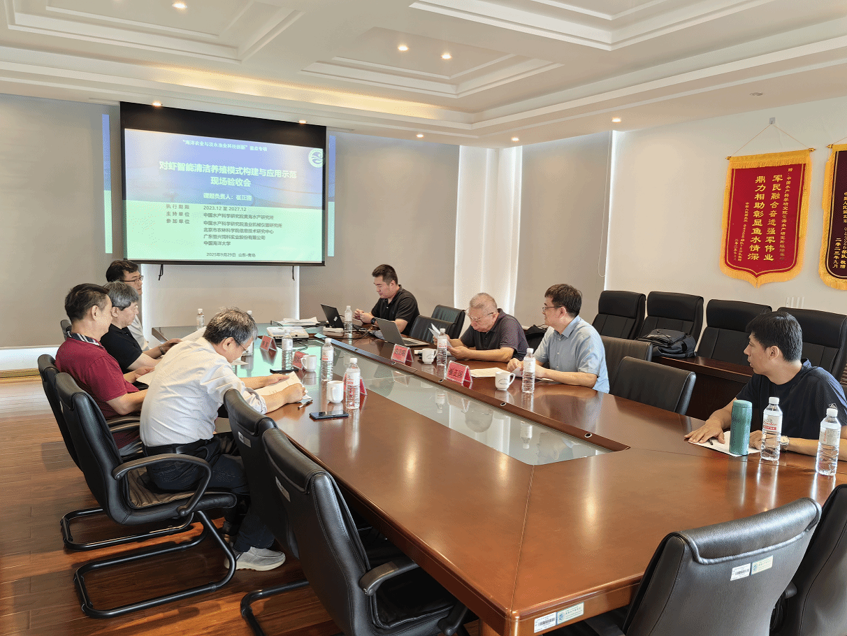 9月29日,中國水產科學研究院黃海水產研究所組織有關專家對國家重點研發計劃項目“陸基工廠化養殖關鍵技術與智能化裝備(2023YFD2400400)”課題3“對蝦智能清潔養殖模式構建與應用示范(2023YFD2400403)”階段性成果進行了現場驗收,驗收專家組由山東省海洋科學研究院、中國科學院海洋研究所、青島通用水產養殖有限公司等單位專家組成。