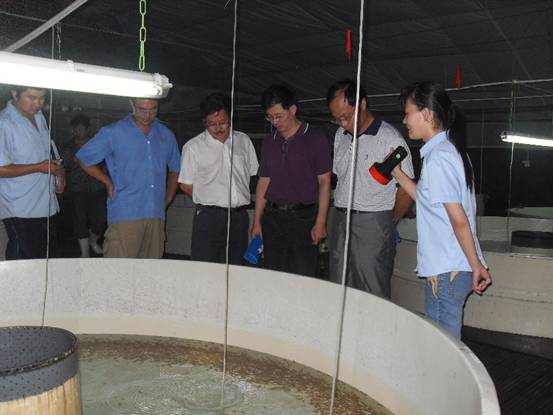 9月2日,農業部科教司產業技術處張國良處長、農業部漁業局養殖處于秀娟處長、水科院科技處劉英杰處長等領導到萊州明波水產有限公司檢查指導鲆鰈類產業體系萊州試驗站的工作。黃海所李健副所長和鲆鰈類產業體系崗位科學家等陪同考察。