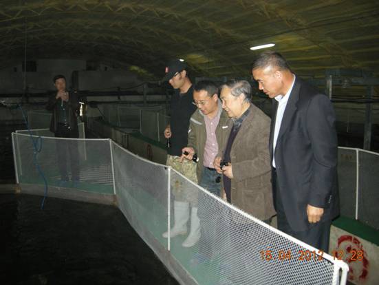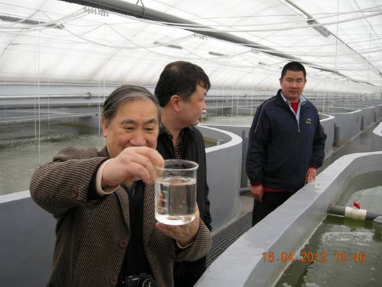 在參觀萊州明波水產有限公司養殖車間時,雷霽霖院士與公司管理人員就工業化養殖和苗種繁育過程中遇到的技術問題進行了交流與討論,鼓勵大家要勇于創新,重視大規格、高密度大菱鲆循環水工廠化養殖試驗,努力將公司打造成為鲆鰈類產業的領跑者,為體系向高端產業研究方向進發、為我國海水魚類早日走上工業化養殖道路作出更大的貢獻。