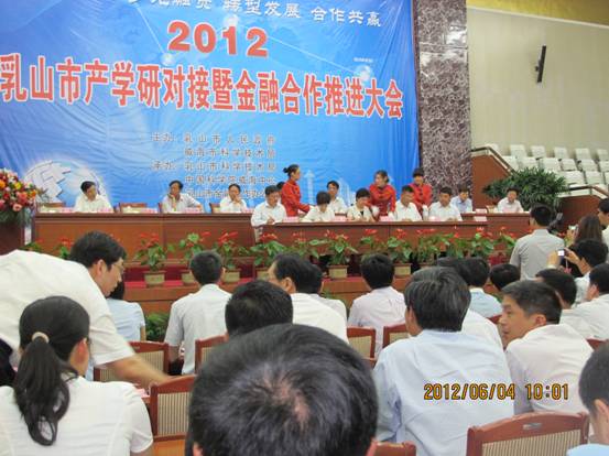 6月3日上午,2012乳山市產學研對接暨金融合作推進大會在該市中心會議室隆重舉行。山東省科技廳副廳長、青島國家海洋科學研究中心主任李乃勝,威海市人民政府副市長徐連新,乳山市委書記高書良和市長隋建波等領導出席了會議。中國工程院院士麥康森等30多家大學和科研院所的80多位專家應邀參加了會議。