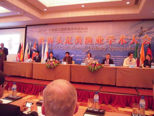 5月13至17日,2010’中國浙江國際海洋科技論壇暨世界頭足類漁業學術大會在浙江舟山召開。此次學術大會是在國家外國專家局、浙江省人民政府的大力支持下,由浙江省人力資源與社會保障廳、浙江省海洋與漁業局、舟山市人民政府、浙江海洋學院、黃海所、臺灣大學聯合主辦,來自西班牙、德國、法國、意大利、美國、韓國、俄羅斯、菲律賓、日本、印度、澳大利亞、巴西、臺灣等13個國家和地區的專家以及國內學者等100余人參加了會議。