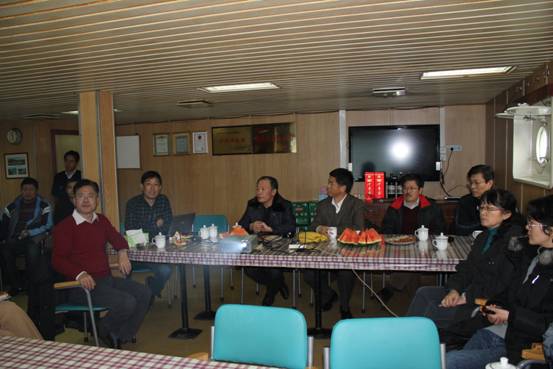 所領(lǐng)導(dǎo)首先聽取了“北斗”號(hào)調(diào)查船2011年的工作總結(jié)以及船舶運(yùn)行狀況匯報(bào),實(shí)地查看了船舶駕駛室和機(jī)艙等重點(diǎn)部位。針對(duì)“北斗”號(hào)的工作現(xiàn)狀和存在的問題,所長王清印發(fā)表了重要講話,他代表所領(lǐng)導(dǎo)班子對(duì)“北斗”號(hào)調(diào)查船全體船務(wù)人員為黃海所科技事業(yè)做出的貢獻(xiàn)表示感謝,對(duì)大家一年來保持船舶安全運(yùn)行,圓滿完成各項(xiàng)任務(wù),表示誠摯的問候。他說,“北斗”號(hào)多年來為我國的海洋科技事業(yè)做出了重要貢獻(xiàn),曾被農(nóng)業(yè)部授予的“功勛號(hào)調(diào)查船”,“北斗”號(hào)取得的成績離不開每一位船務(wù)人員的辛勤勞動(dòng),也得到了所內(nèi)外的普遍好評(píng)。王清印所長對(duì)“北斗”號(hào)今后的工作提出了希望和要求,勉勵(lì)大家繼續(xù)發(fā)揚(yáng)“北斗”號(hào)的光榮傳統(tǒng)和團(tuán)隊(duì)精神,團(tuán)結(jié)一致,密切協(xié)作,爭取完成更多的調(diào)查任務(wù),為我國的海洋科學(xué)事業(yè)再立新功;并重點(diǎn)強(qiáng)調(diào)了船舶的安全,要求大家一定要強(qiáng)化管理、把船舶維護(hù)保養(yǎng)好,確保船舶安全運(yùn)行。各位所領(lǐng)導(dǎo)也對(duì)“北斗”號(hào)各位船務(wù)工作者提出了要求和希望,共同祝愿“北斗”號(hào)調(diào)查船為我國的海洋科技事業(yè)做出更大的成績。