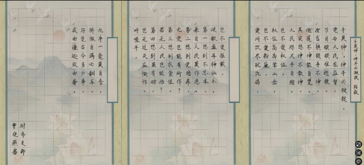 書畫作品通過網(wǎng)絡(luò)展覽,以“掌上看”“網(wǎng)上評(píng)”的方式,拓寬了黃海所廉潔文化傳播渠道,評(píng)選出書法類、繪畫類等優(yōu)秀作品12幅。