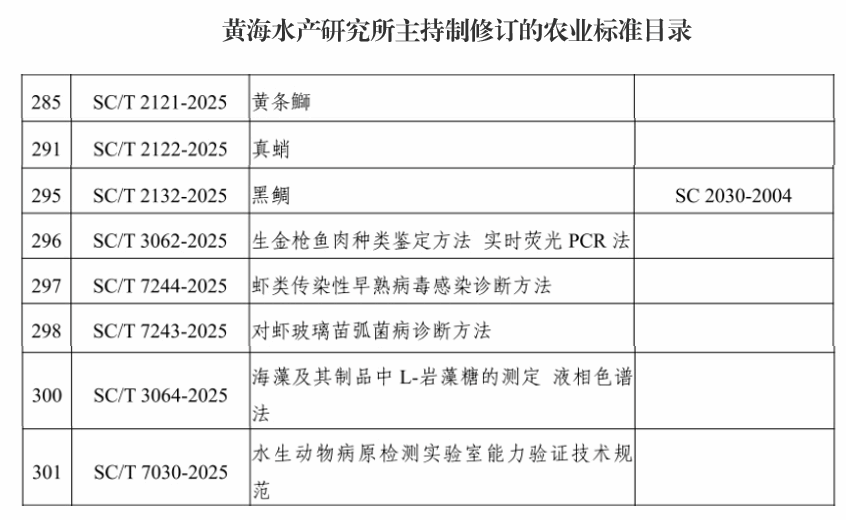 近日,農業農村部印發《中華人民共和國農業農村部公告第873號》,公布了330項經專家審定通過的農業行業標準,將于5月1日起實施。由中國水產科學研究院黃海水產研究所科研人員主持制修訂的8項農業行業標準正式獲批發布,包括水產養殖3項、水產品加工2項及病害防疫領域3項。以上標準的發布和實施,有利于規范和引導水產養殖、病害防控、水產加工行業的發展,為全面提高我國海洋漁業的標準化水平、規范我國海洋漁業發展發揮了重要的技術支撐和引領作用。