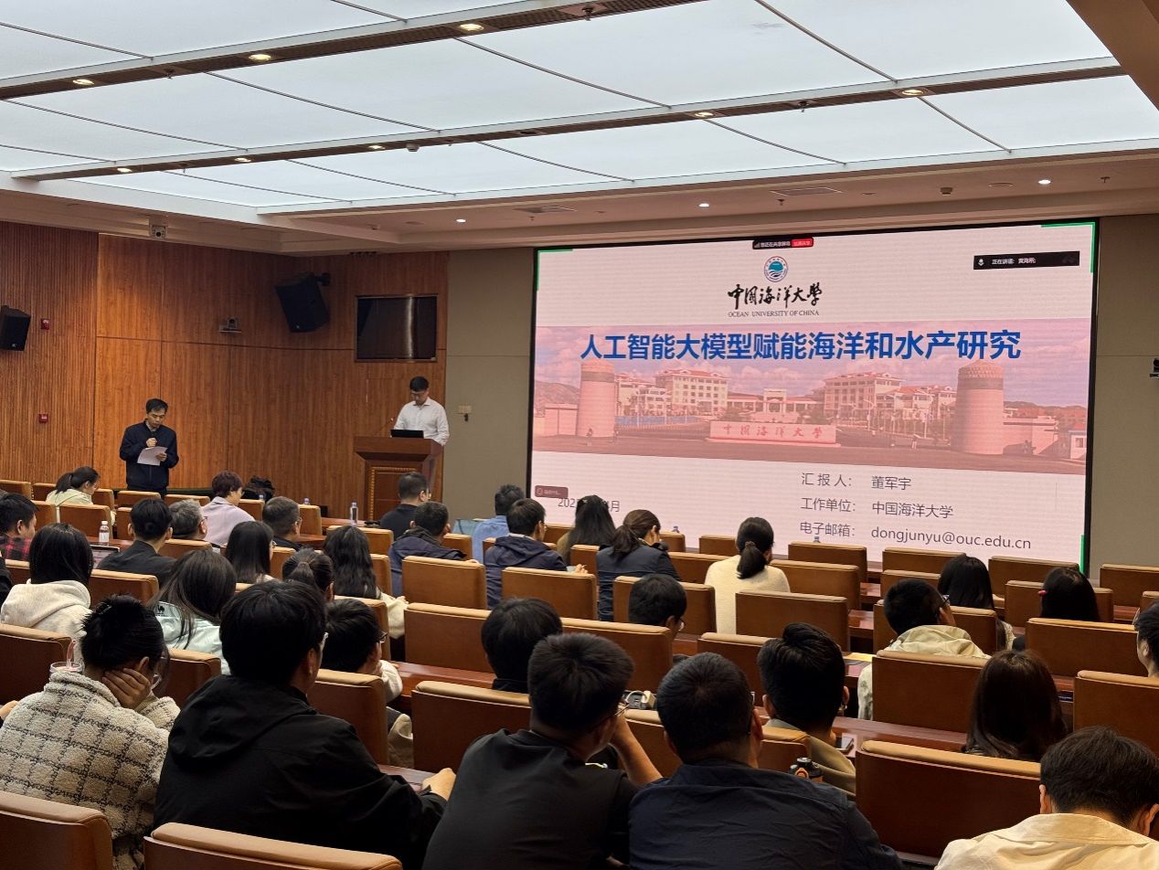 董軍宇教授作了題為“人工智能大模型賦能海洋與水產(chǎn)研究”的學術報告,系統(tǒng)介紹了海洋領域的大模型及其研究進展,重點分享了人工智能在海洋環(huán)境預報、水產(chǎn)養(yǎng)殖等領域的應用情況,并展望了人工智能的發(fā)展趨勢與前景。報告引起了與會人員的熱烈反響。