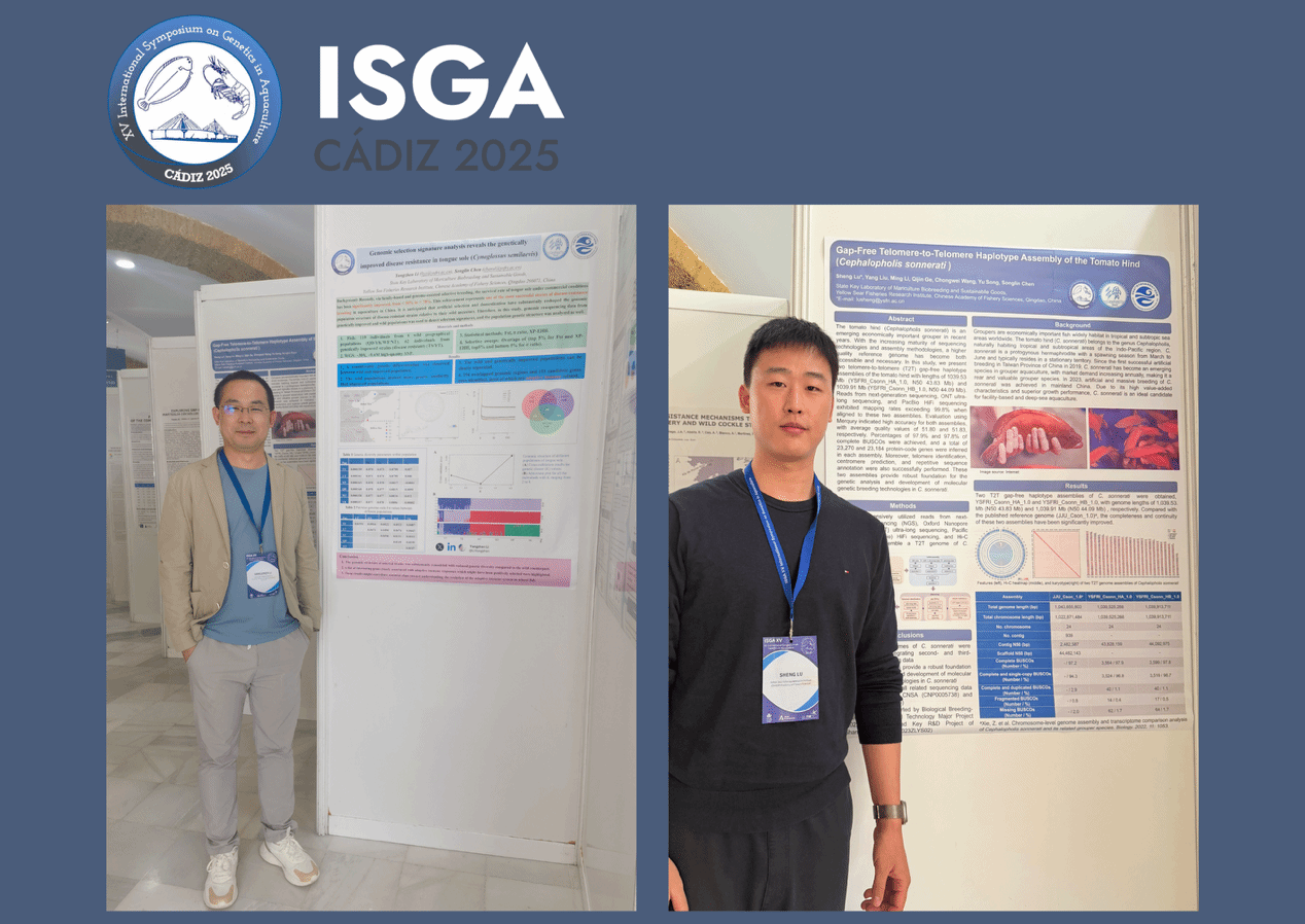 另外,黃海所李仰真副研究員和盧昇助理研究員分別以“Genomic Selection Signature Analysis Reveals the Genetically Improved Disease Resistance in Tongue Sole (Cynoglossussemilaevis)”和“Gap-Free Telomere-to-Telomere Haplotype Assembly of the Tomato Hind (Cephalopholissonnerati)and Its Applications”為題進行了墻報展示,展示了黃海所在魚類抗病良種選育、新養殖對象開發以及高質量基因組精細圖譜繪制方面的最新進展。