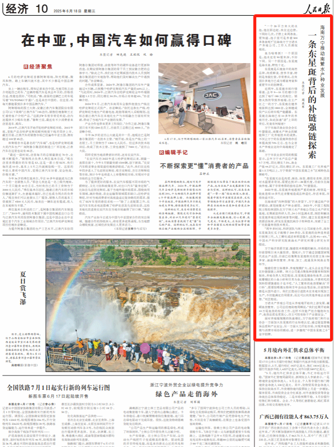 6月18日,《人民日報(bào)》以《一條東星斑背后的補(bǔ)鏈強(qiáng)鏈探索》為題,報(bào)道了中國水產(chǎn)科學(xué)研究院黃海水產(chǎn)研究所陳松林院士團(tuán)隊(duì)在海南萬寧推動南繁水產(chǎn)種業(yè)發(fā)展的相關(guān)工作。