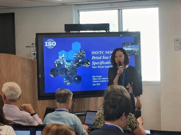 朱文嘉副研究員作了《干海參制品》國際標準新工作項目提案專題報告,詳細介紹了立項背景、必要性、技術要求、預期目標及工作計劃,展示了我國在該領域扎實的科研基礎和技術實力,該提案獲得了與會代表的高度評價和一致認可。干海參作為我國傳統的優勢海產品,國際標準的研制將有效提升產品質量和安全水平,促進全球海參產品貿易及水產加工業高質量發展。根據會議決議,ISO/TC34/SC6秘書處將啟動分技術委員會職權范圍的優化調整與《干海參制品》國際標準的新項目提案的投票程序,若投票順利通過,將進一步推動我國水產領域國際標準化能力提升,將我國的產業優勢轉化為標準優勢,顯著增強我國在水產品加工領域的國際話語權和市場競爭力。