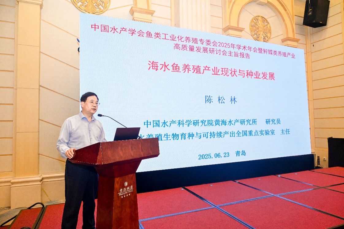 6月23日,中國水產學會魚類工業化養殖專業委員會2025年學術年會暨鲆鰈類養殖產業高質量發展研討會在山東青島召開。本次會議由中國水產學會、中國水產科學研究院黃海水產研究所主辦,海水養殖生物育種與可持續產出全國重點實驗室、中國水產學會魚類工業化養殖專業委員會、農業農村部海洋漁業與可持續發展重點實驗室共同承辦,國家海水魚產業技術體系、中國水產流通與加工協會大菱鲆分會、國家重點研發計劃“鲆鰈類耐高溫和速生新品種培育”項目組協辦。來自全國魚類工業化養殖與鲆鰈類養殖產業領域的專家學者、行業代表等150余人參會。會議開幕式由中國水產科學研究院黃海水產研究所副所長葉乃好主持。