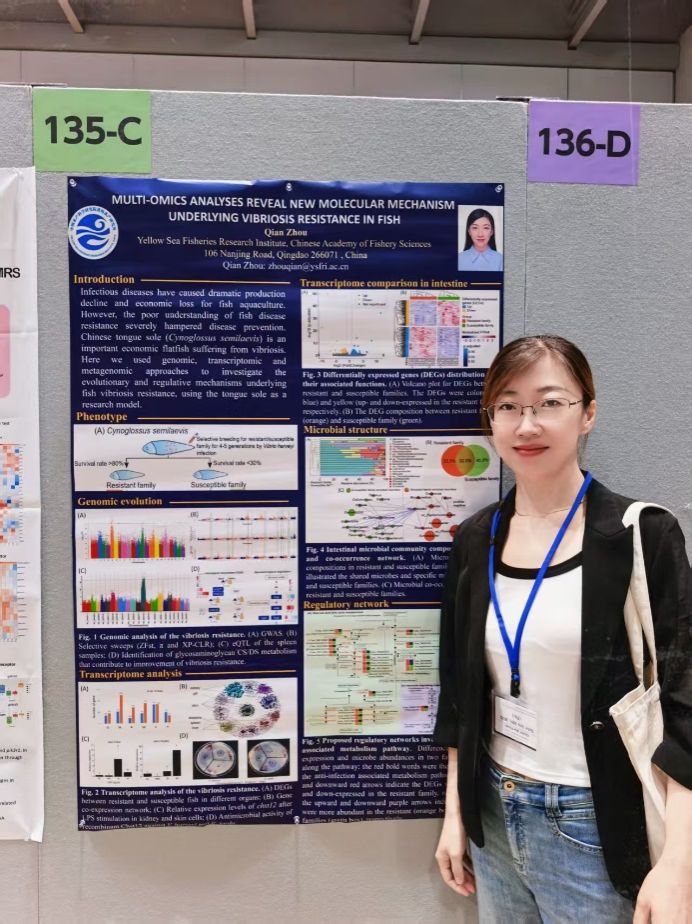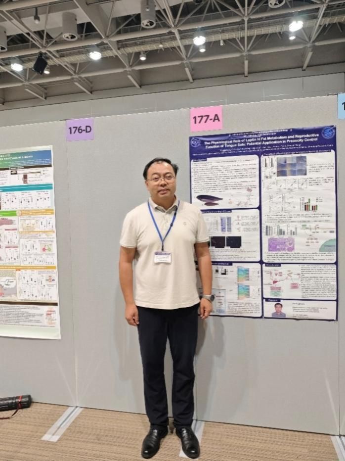 與會期間,徐永江研究員、王娜研究員和周茜研究員分別作了題為“Physiological role of leptin in fat metabolism and reproductive function of tongue sole-implication in sexual precocity control”“Brain differentiation, epigenetic regulation and neurotransmission biases underlying sexual dimorphism of flatfish”“Multi-omics analyses reveals new molecular mechanism underlying vibriosis resistance in fish”的海報展示,王濱研究員作了題為“Differential activation of six galanin receptors by the spexin peptide in yellowtail kingfish (Seriola lalandi)”的口頭報告,分別展示了黃海所在魚類神經內分泌學、脂質代謝、性別決定與分化、抗病育種等研究方向的最新成果,并與國內外同行專家學者進行了深入探討和廣泛交流,跟蹤了解了國際比較內分泌學領域最新研究進展以及未來研究方向,為以后國際合作項目的聯合申報奠定了良好基礎。