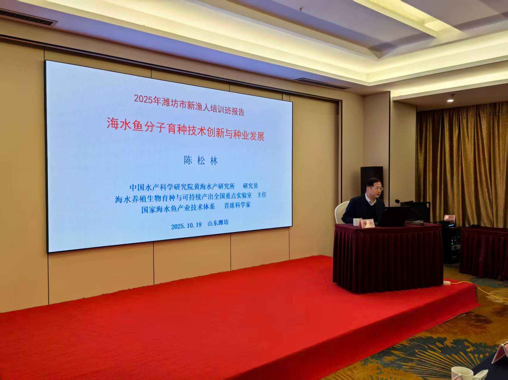 10月19日至20日,由中國水產科學研究院黃海水產研究所、濰坊市海洋發展和漁業局、海水養殖生物育種與可持續產出全國重點實驗室共同主辦的2025年濰坊市“新漁人”培訓班在濰坊成功舉辦。黃海所副所長榮小軍出席開班式,中國工程院院士陳松林受邀講授培訓“第一課”。濰坊市各縣市區漁業主管部門分管領導、2025年濰坊市“新漁人”培育人員等60余人參加培訓。