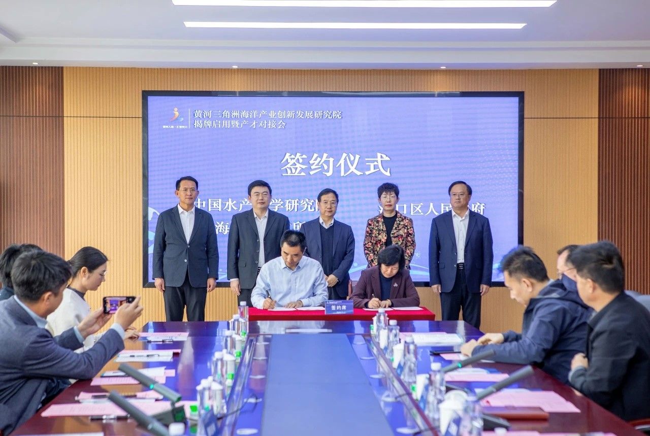 10月20日,由東營市委人才工作領(lǐng)導小組辦公室指導的黃河三角洲海洋產(chǎn)業(yè)創(chuàng)新發(fā)展研究院(以下簡稱“研究院”)揭牌啟用暨產(chǎn)才對接會在東營河口區(qū)成功舉辦。中國水產(chǎn)科學研究院黃海水產(chǎn)研究所副所長榮小軍、中國工程院院士陳松林、成果轉(zhuǎn)化處副處長李彬應(yīng)邀參會。東營市副市長王秀鳳、當?shù)馗骷壵嚓P(guān)部門及22家重點漁業(yè)企業(yè)參加本次活動。儀式由河口區(qū)委副書記、區(qū)長李寶主持。