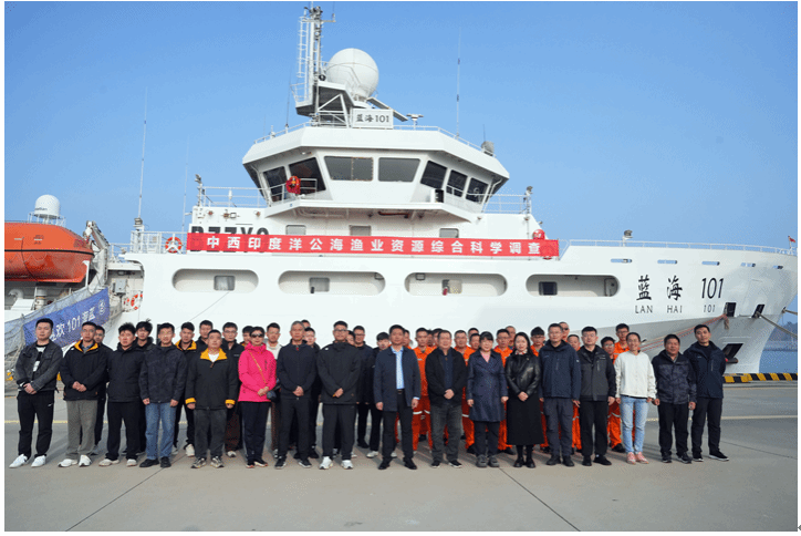 11月9日,中國水產科學研究院黃海水產研究所“藍海101”號調查船啟航執行“2025年度中西印度洋公海漁業資源調查”航次任務。出航前,黃海所副所長王騫及相關部門負責人員到碼頭為全體出海人員送行。