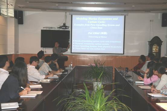 6月9日,美國緬因大學海洋科學學院柴扉教授應邀到黃海所參觀訪問,并為黃海所有關科研人員做了題為“Modeling Marine Ecosystems and Carbon Cycle: Examples from Peru Upwelling System and China Seas”的學術報告,柴扉教授以秘魯上升流系統和中國海為例,講述了生物地球化學模型的構建和應用以及相關碳循環研究。學術交流前,唐啟升院士接見了柴扉教授。