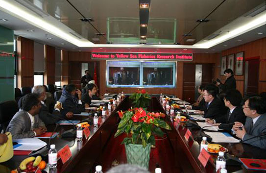 王清印所長(zhǎng)首先對(duì)也門政府漁業(yè)代表團(tuán)的到訪表示熱烈歡迎,并希望通過也門政府漁業(yè)代表團(tuán)的到訪,加深中國和也門漁業(yè)界的了解,并建立起良好的合作關(guān)系。金顯仕副所長(zhǎng)向來賓介紹了黃海所的學(xué)科設(shè)置、重點(diǎn)研究領(lǐng)域、重點(diǎn)研究方向、人才培養(yǎng),以及國際間的合作與交流等方面情況;隨后,雙方就各自關(guān)心的問題進(jìn)行了廣泛交談,探討了合作交流的可能性。