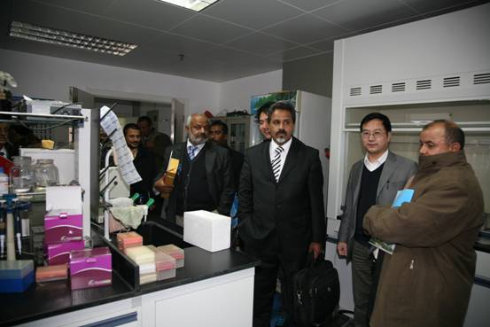 交談結(jié)束后,也門政府漁業(yè)代表團(tuán)在金顯仕副所長(zhǎng)的陪同下參觀了黃海所海洋產(chǎn)物資源與酶工程實(shí)驗(yàn)室、種質(zhì)資源與工程育種實(shí)驗(yàn)室和水產(chǎn)品安全與質(zhì)量檢測(cè)研究室,聽取了各部門負(fù)責(zé)人的詳細(xì)介紹。