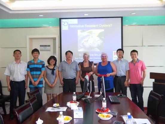 訪問期間,Catherine博士為黃海所有關科研人員做了題為“Norovirus Resistant Oysters”的學術報告,并就合作項目的研究進展和下一步工作計劃與黃海所有關專家進行了座談。