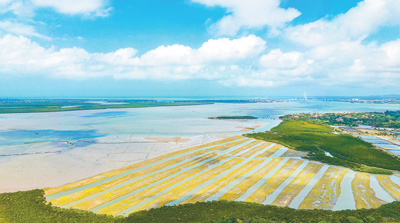 近日,在海南東寨港國家級自然保護區生態修復和資源保護項目現場,海灘上栽著紅樹幼苗的地帶,如根根“琴弦”將兩片紅樹林連接在一起,煥發出春天的生機與活力。據了解,該項目實施以來,共新造紅樹林726畝,修復現有紅樹林2083畝,目前項目已經完工。