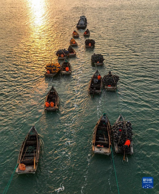 眼下正值山東省榮成市各大海洋牧場貝類、藻類養殖的管護期,漁民們駕駛漁船在海面上穿梭,一派“海上春耕”的繁忙景象。近年來,榮成市依托漁業特色優勢和資源稟賦,助推經濟高質量發展。新華社發(李信君攝)