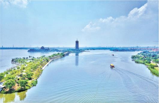 夏日的膠州少海風景區一湖碧波,游船穿梭,景色如畫。風景區位于膠州灣西北岸,是膠州市近年來重點打造的國家級水利風景區,在良好的自然生態環境基礎上融合了膠州悠久歷史文化和民俗風情,成為宜居宜游的現代化濱水景區,吸引了大量親水禽類到此棲居,并成為當地近郊休閑游目的地。